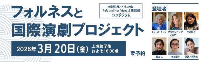 【文学座通信1・2月号のお詫び】1・2月号でご案内いたしました文学座3月アトリエの会『Fefu and Her Friends』の開演時間に誤りがございました。